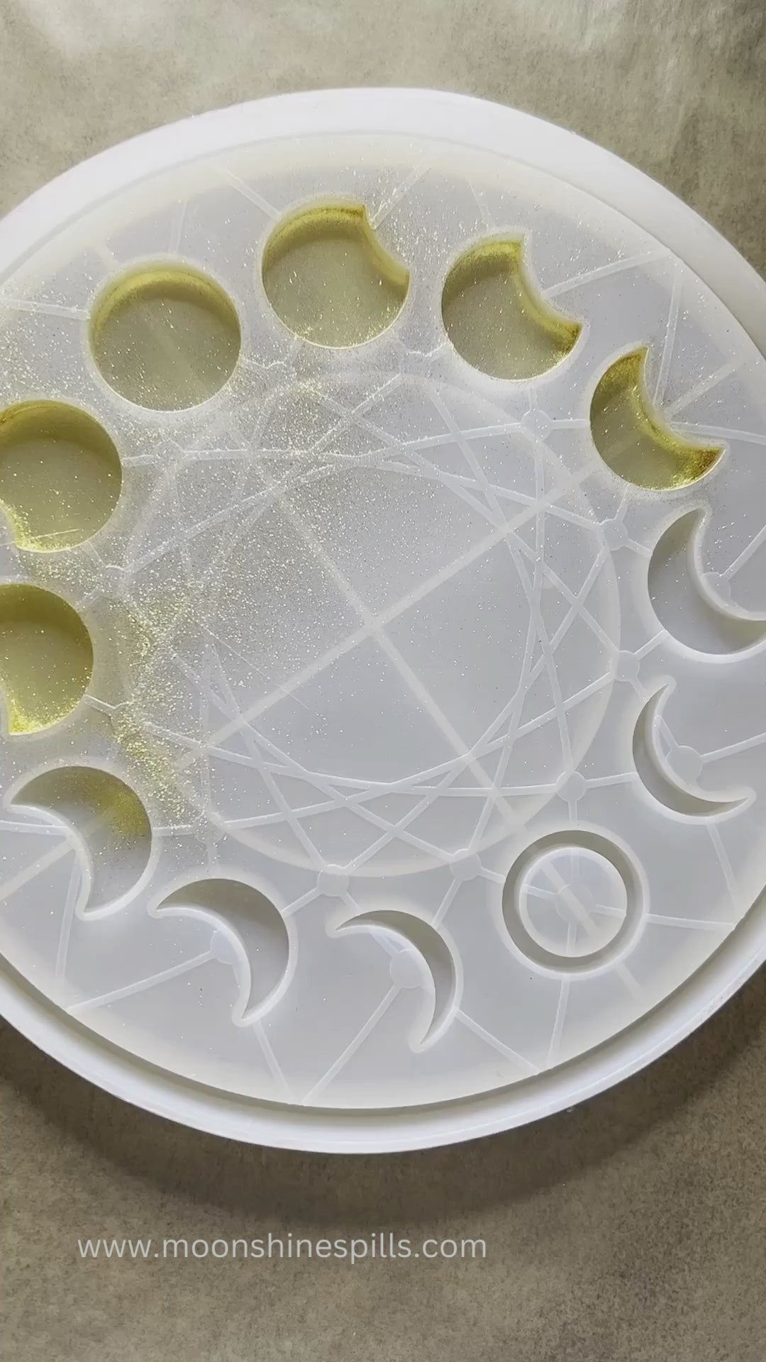 Perfect for moon rituals, crystal grids, or simply adorning your sacred space, this tray brings the cosmic beauty of the lunar phases into your everyday life. Allow its soothing blue tones and shimmering gold accents to invoke calm, clarity, and spiritual growth as you journey through each phase of the moon's cycle. Let this piece be a guiding light for your magical practices and a reminder that, like the moon, you are always in a beautiful state of becoming.