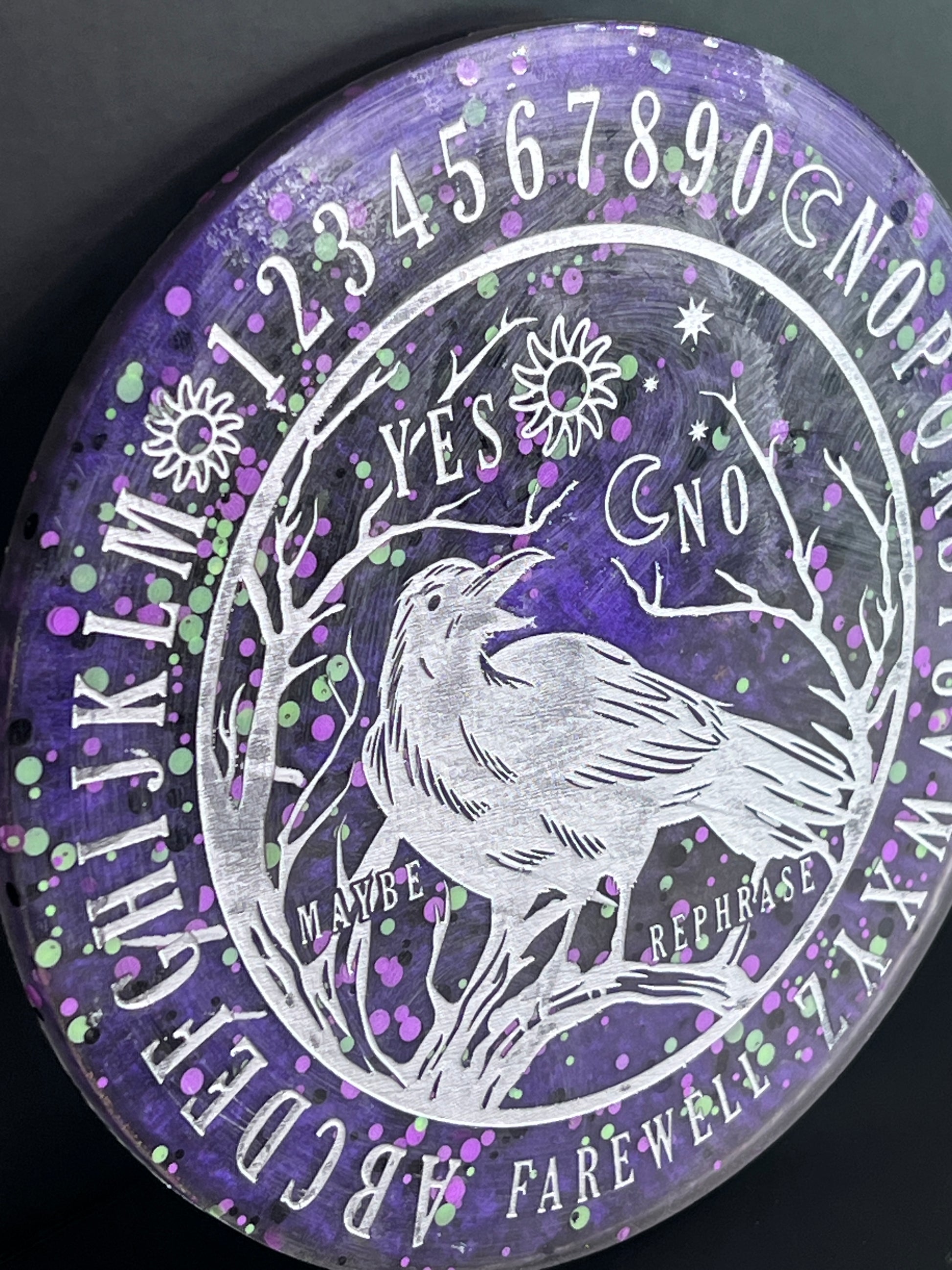 • Handmade resin raven talking board