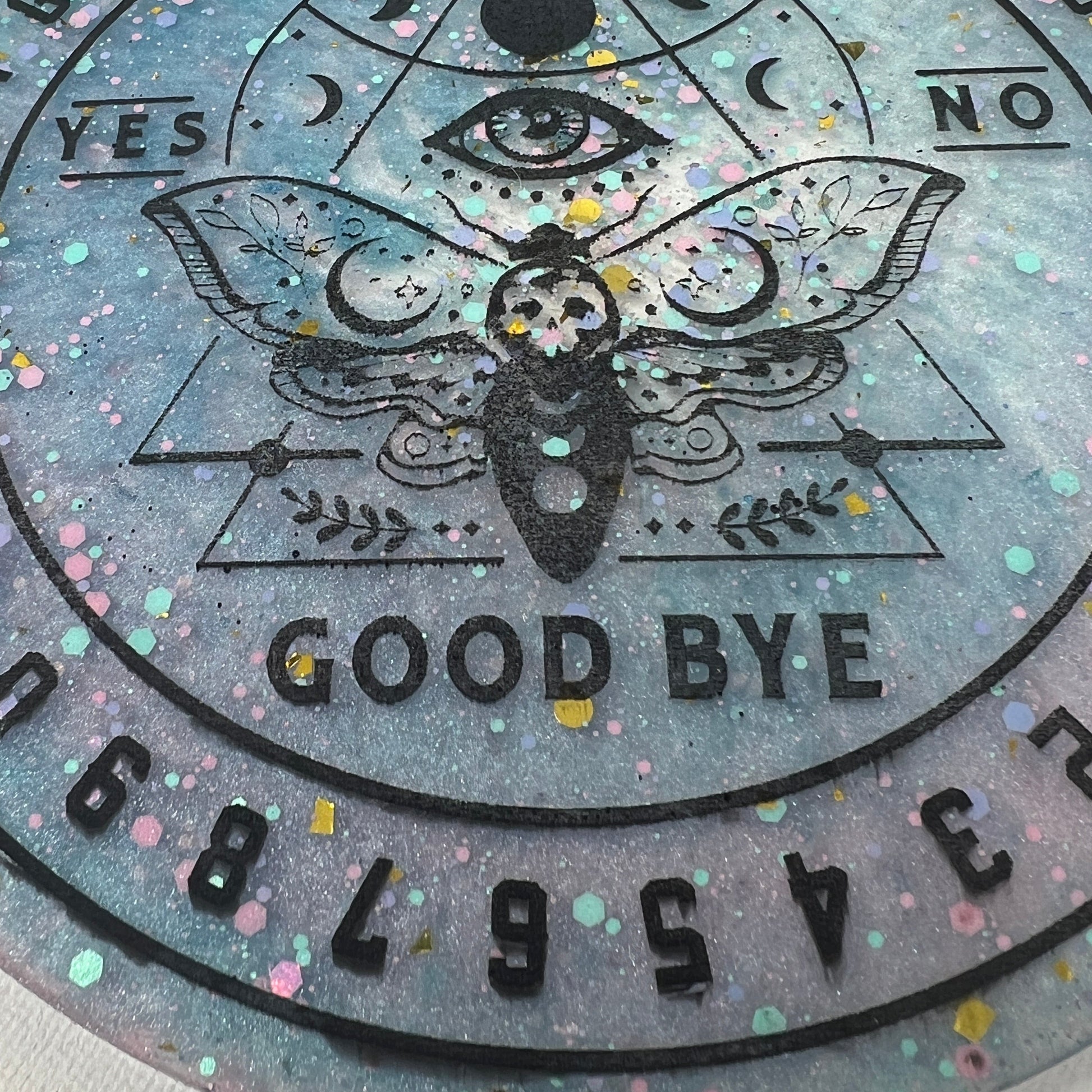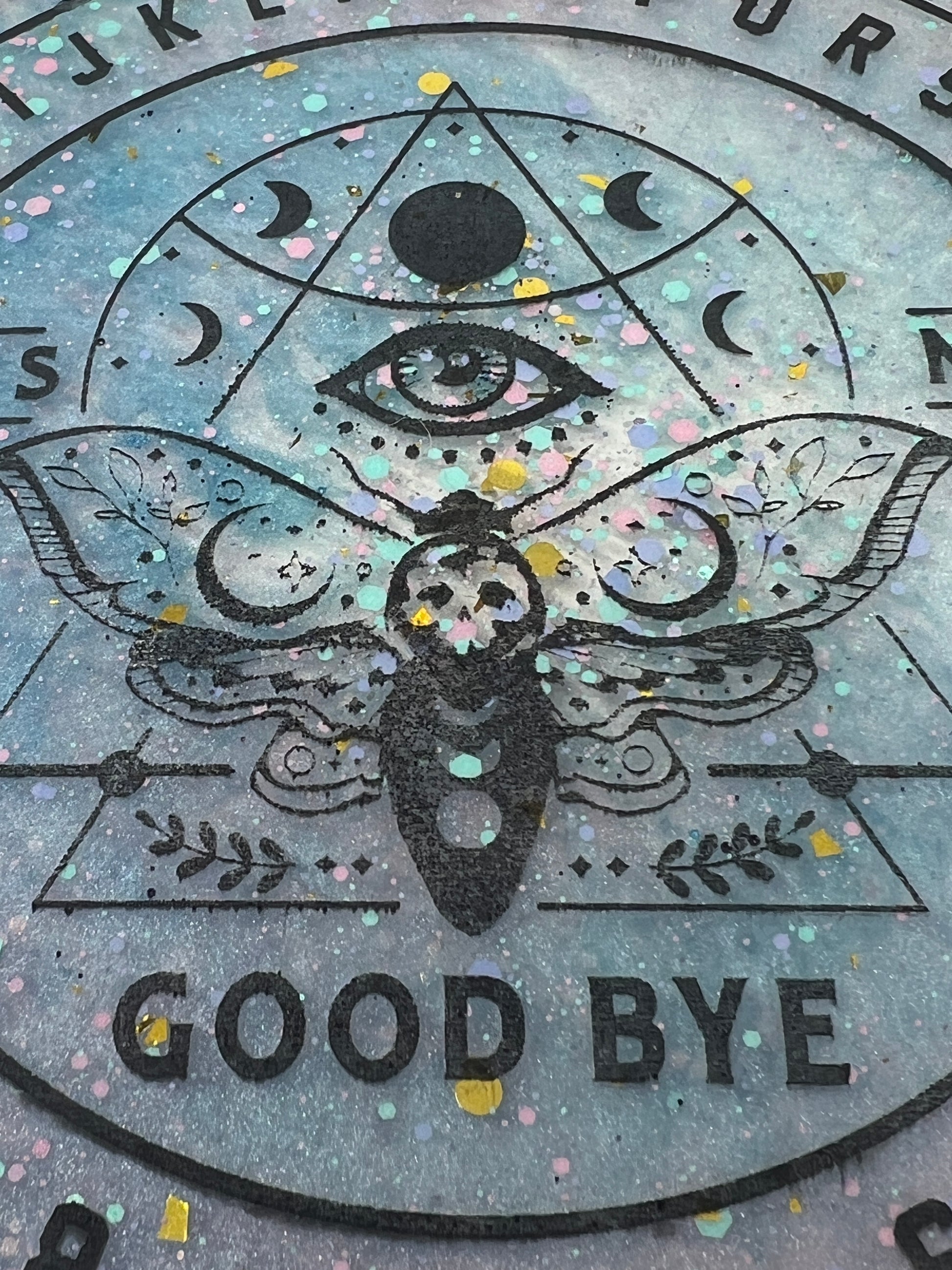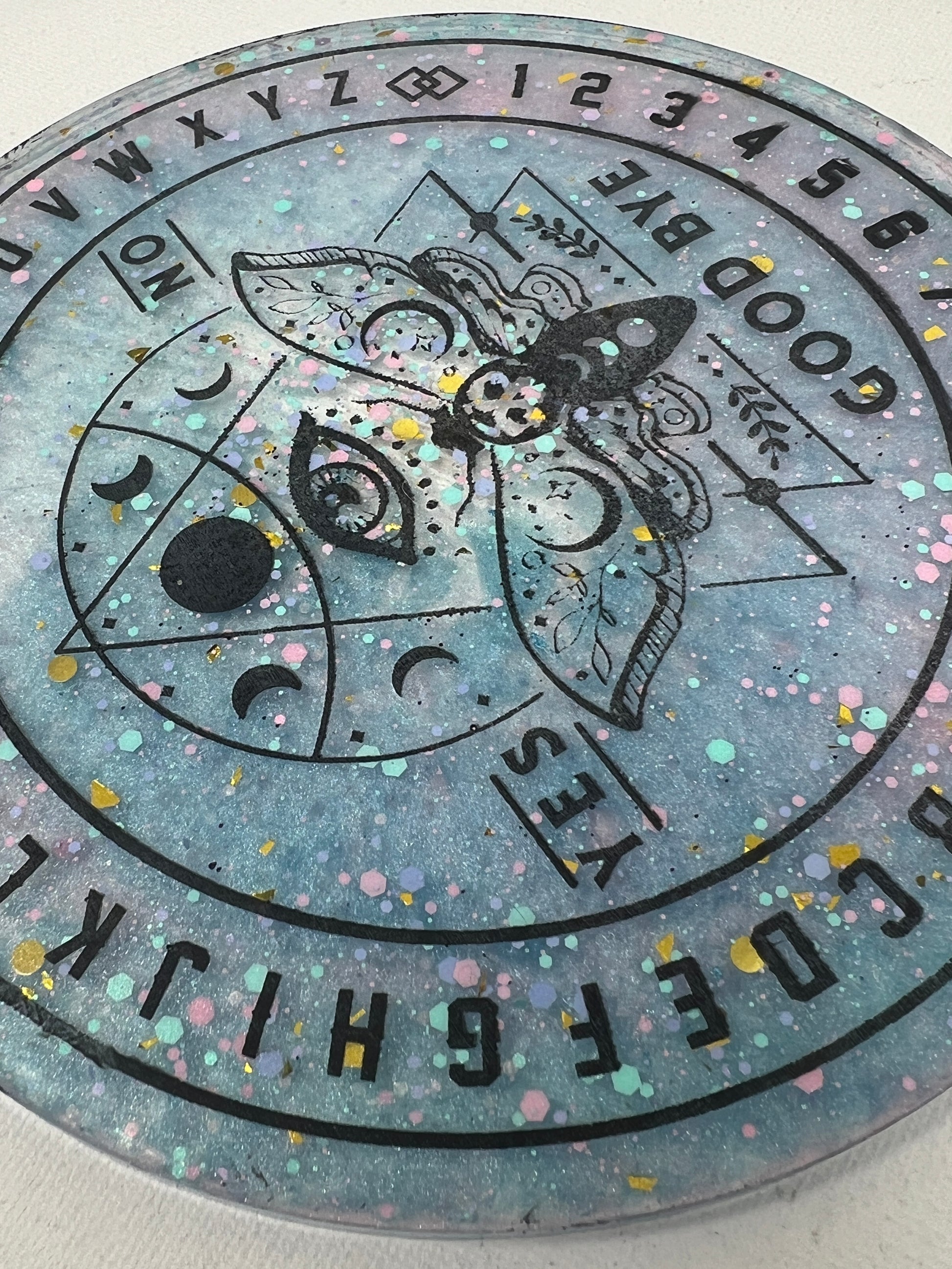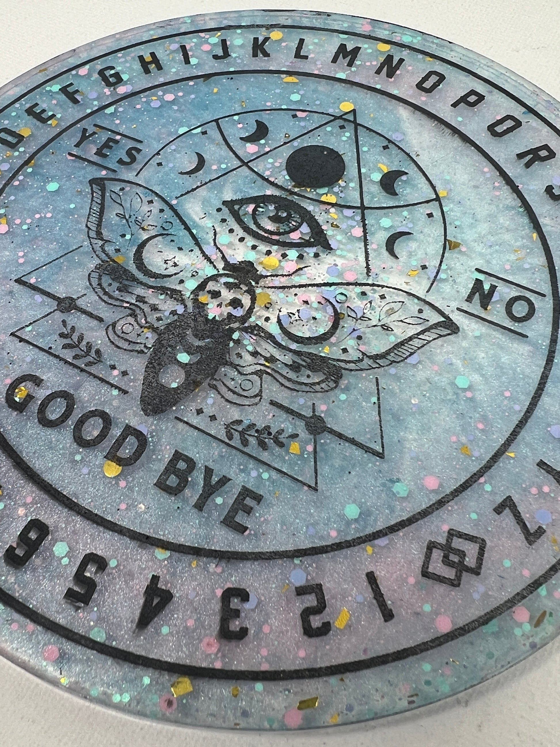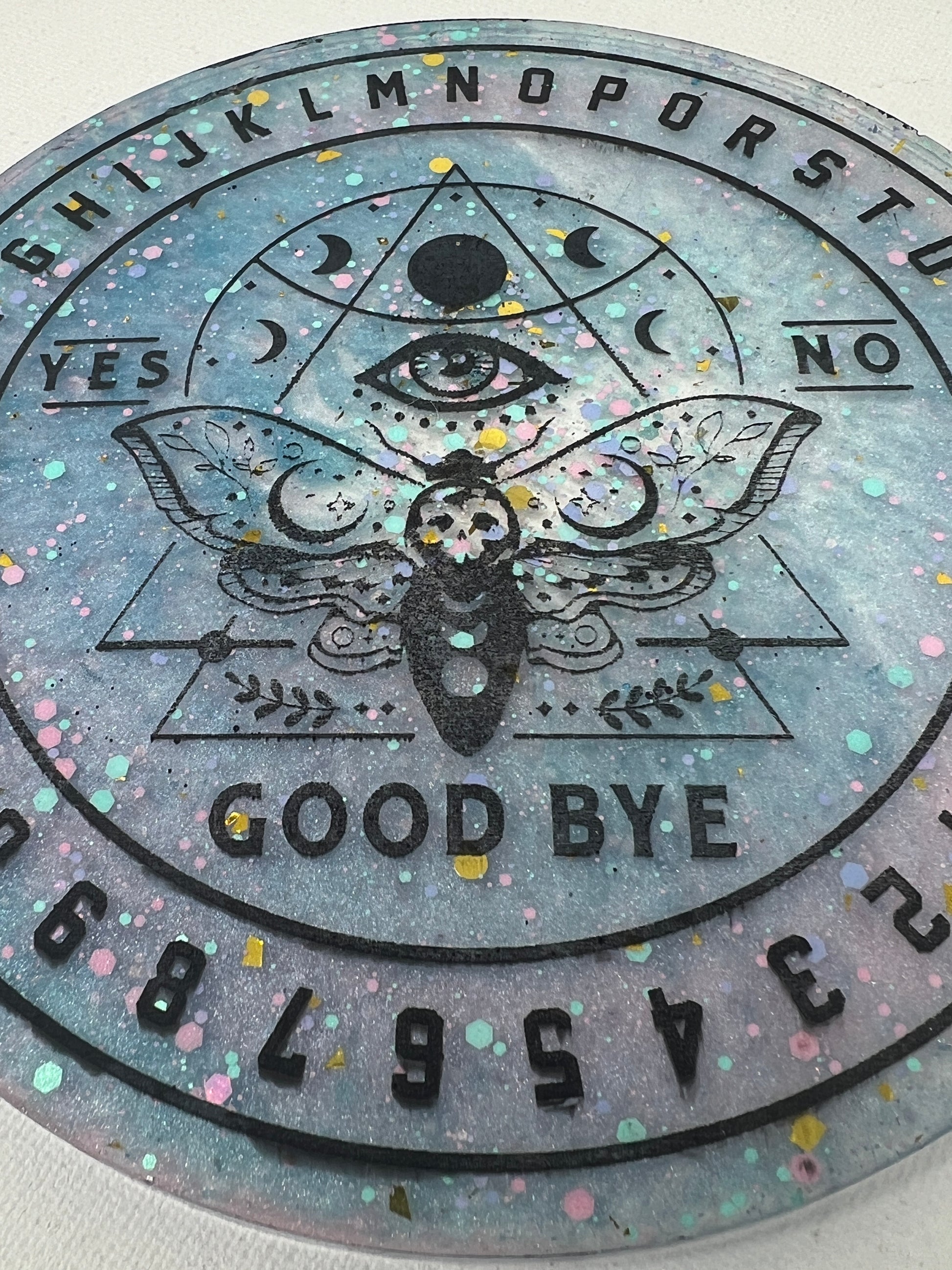 Step into a cosmic dreamscape with the Celestial Dreams Divination Board, where pastel hues and shimmering stardust come together to create a portal to otherworldly realms. Adorned with a watchful all-seeing eye and the ethereal moth, this board invites you to dance with the mysteries of the universe. Speckled with confetti-like stars, it captures the playful magic of the cosmos, making it a beautiful companion for those seeking guidance and enchantment. Let the soft colors and celestial symbols awaken your intuition and uncover the answers that lie in the vast night sky.