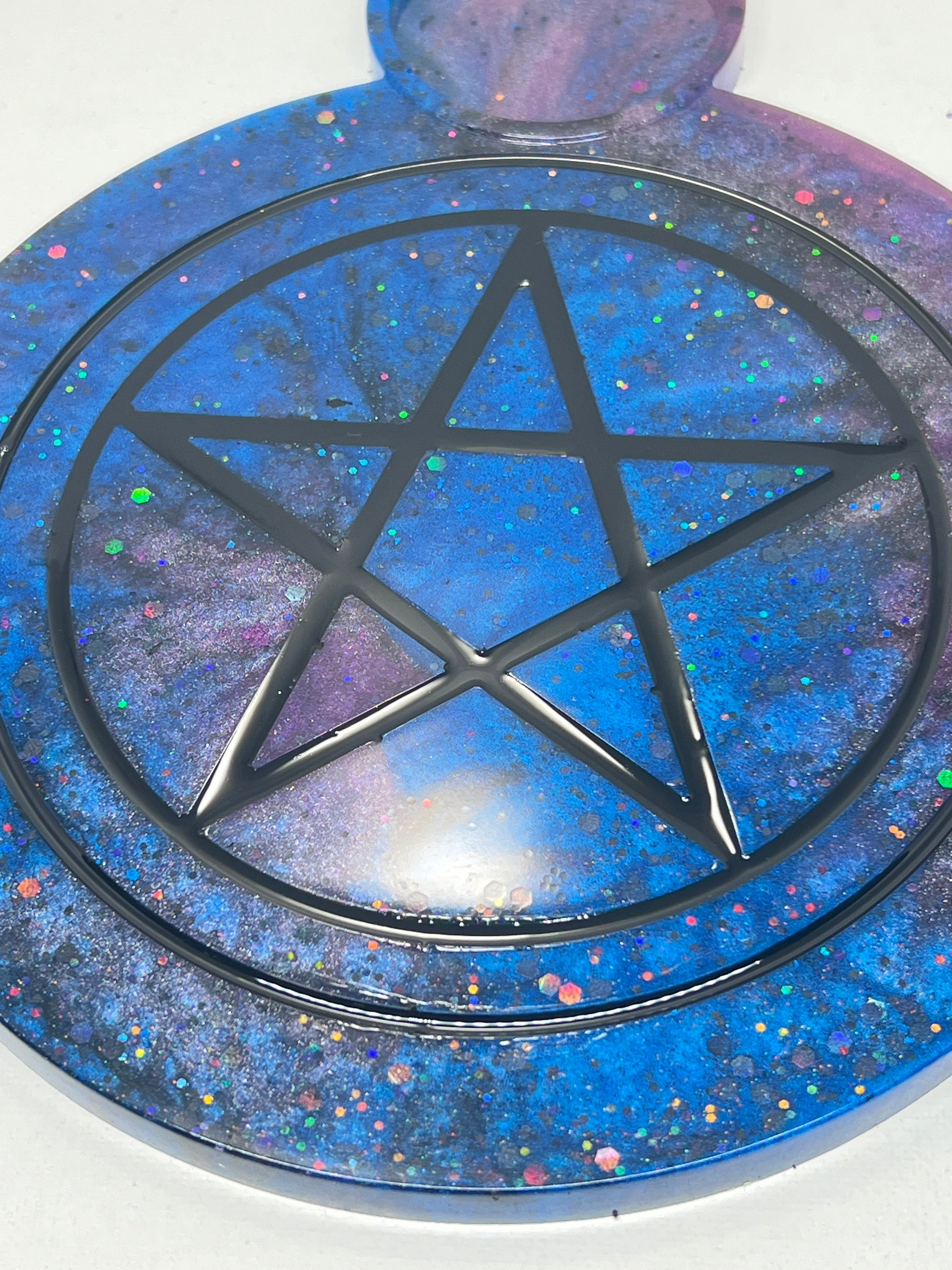 ๐ Celestial Void Ritual Altar Candle Tray | Galactic Nebula Pentacle