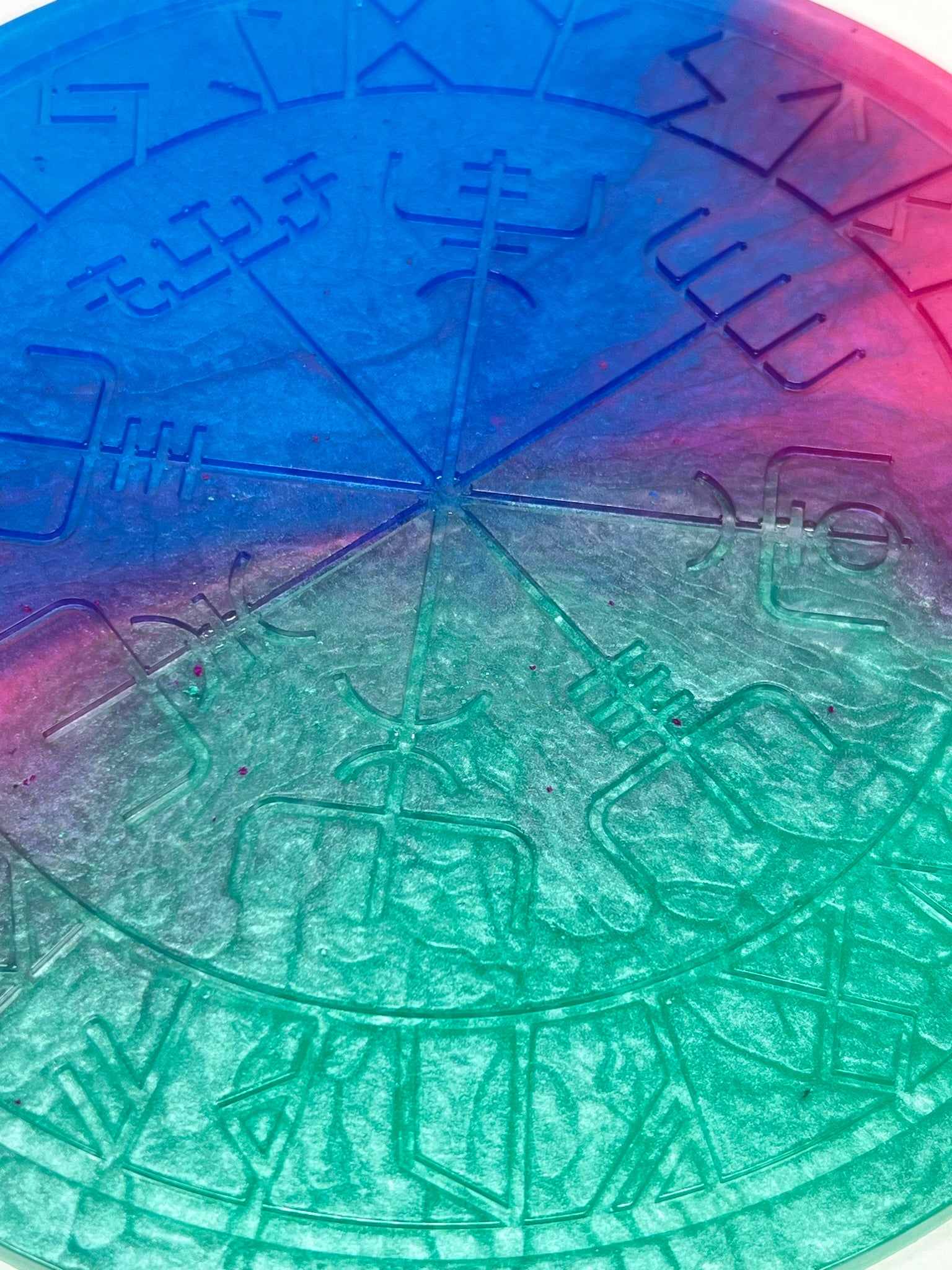 Hand-poured and uniquely one-of-a-kind, this Runic Compass Wheel is perfect for anyone seeking stillness, insight, or a deeper connection to their inner waters. Let the colors flow, let the runes guide you, and step into your own intuitive magic. ✨🌊🔮